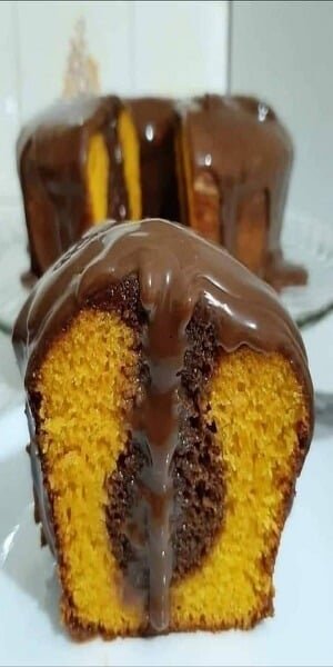 Bolo de Cenoura mesclado com Chocolate